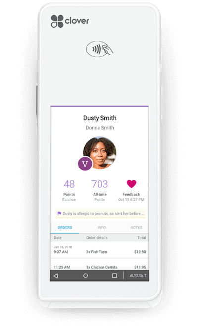 Con capacidad de pantalla táctil, no más bolígrafo y papel, ni recibos perdidos. Todo se captura y almacena digitalmente en tu panel de control Clover.